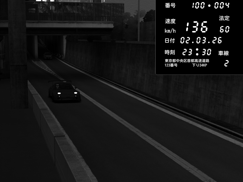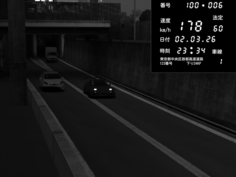 | 2026/03/02 23:32 | C1内回り 京橋 | 151 / 60 km/h | 9527 | Pit Road M - Mitsubishi GTO Twin Turbo | CAPTURE |