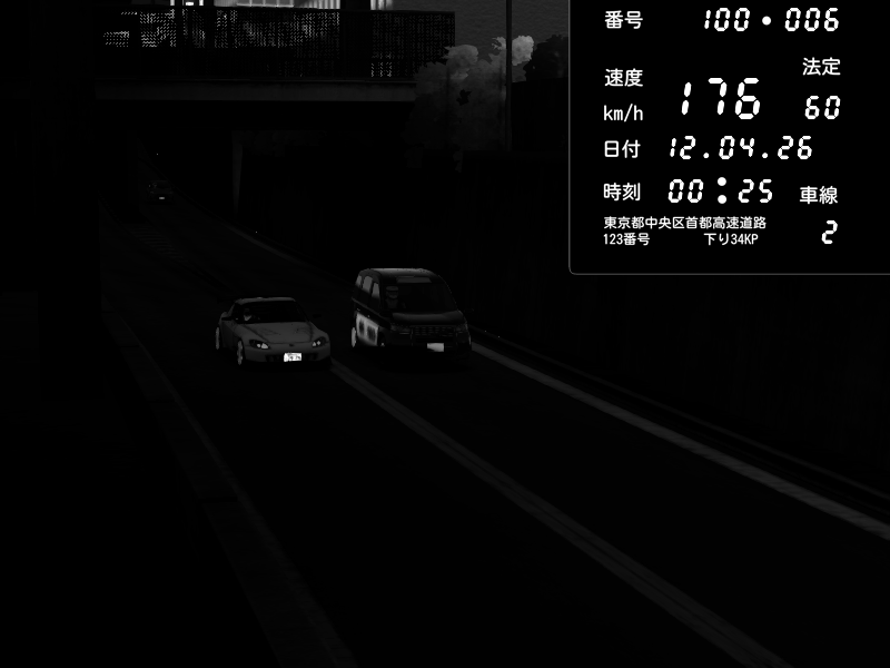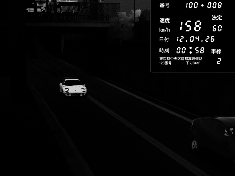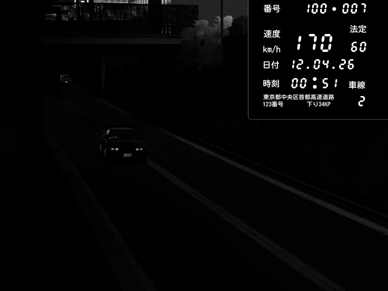| 2026/04/11 22:11 | C1内回り 京橋 | 150 / 60 km/h | Player | Mazda RX-7 FD3S RE Amemiya | CAPTURE |