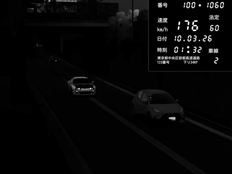 | 2026/03/10 01:32 | C1内回り 京橋 | 176 / 60 km/h | PPED | Toyota Supra MKIV Time Attack | CAPTURE |
