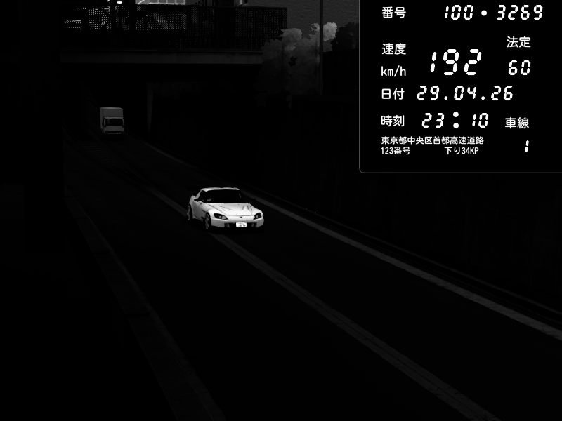 | 2026/04/27 23:02 | C1内回り 京橋 | 132 / 60 km/h | u_m666 | Honda S2000 (AP2 - Legendary) | CAPTURE |