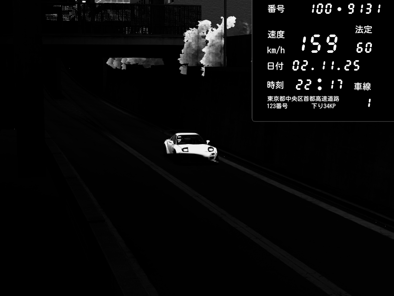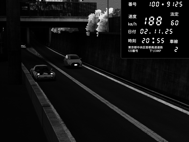 | 2025/11/01 22:32 | C1内回り 京橋 | 195 / 60 km/h | Kamaleon | Nissan GT-R NISMO 2017 | CAPTURE |