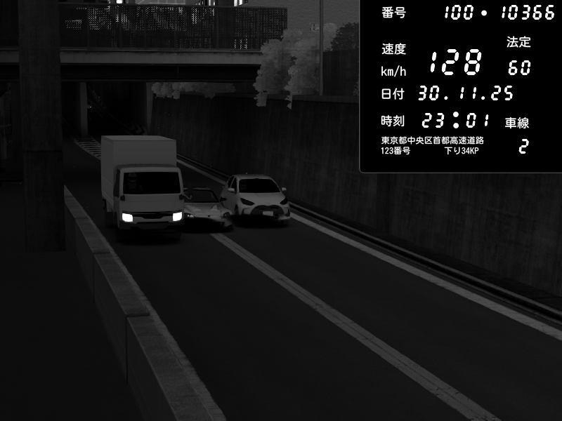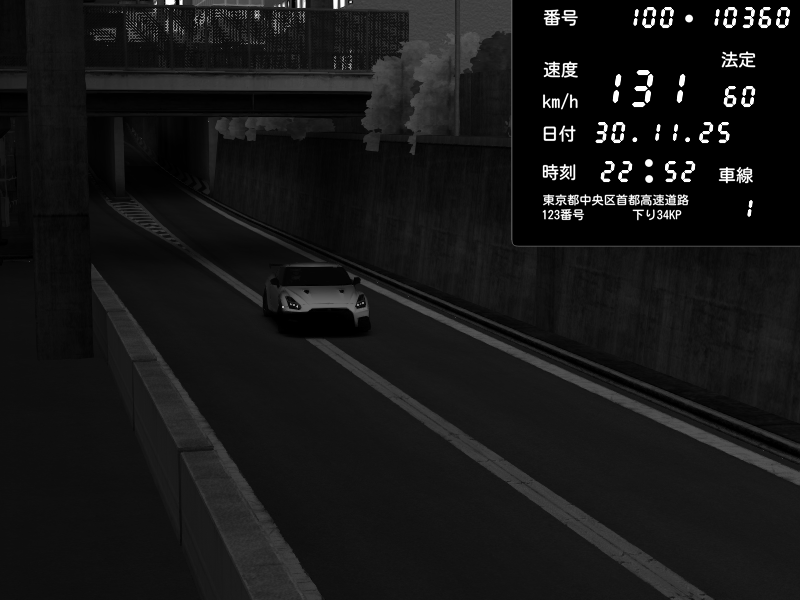 | 2025/11/30 22:52 | C1内回り 京橋 | 131 / 60 km/h | ytterbium | Nissan GT-R NISMO 2017 | CAPTURE |
