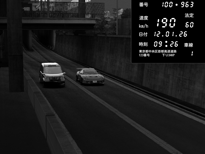 | 2026/01/11 15:16 | C1内回り 京橋 | 180 / 60 km/h | Raven | Pit Road M - Mitsubishi GTO Twin Turbo | CAPTURE |