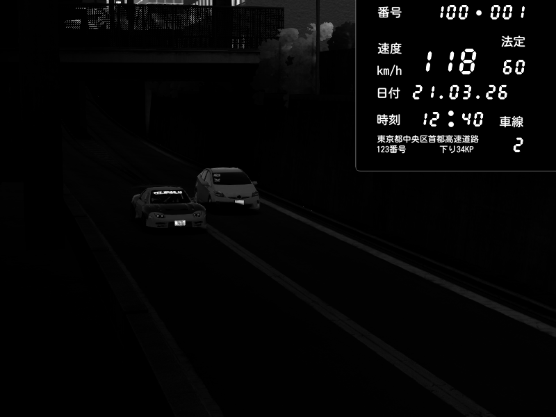 | 2026/03/21 23:17 | C1内回り 京橋 | 184 / 60 km/h | BKTRisland | Nissan GT-R NISMO 2017 | CAPTURE |