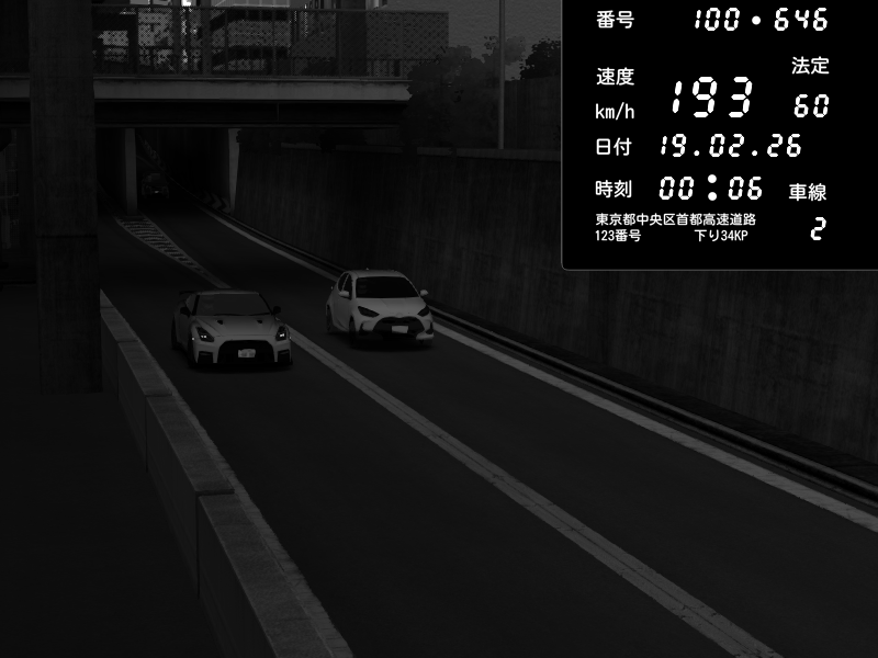 | 2026/02/18 23:13 | C1内回り 京橋 | 197 / 60 km/h | yuu gaku | Nissan GT-R NISMO 2017 | CAPTURE |