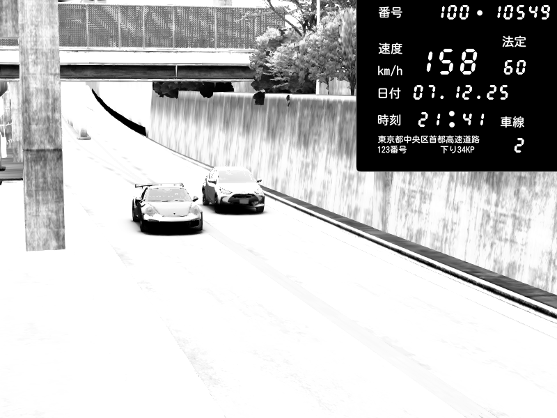| 2025/12/07 21:41 | C1内回り 京橋 | 158 / 60 km/h | DD | Porsche 911 GT3 RS | CAPTURE |