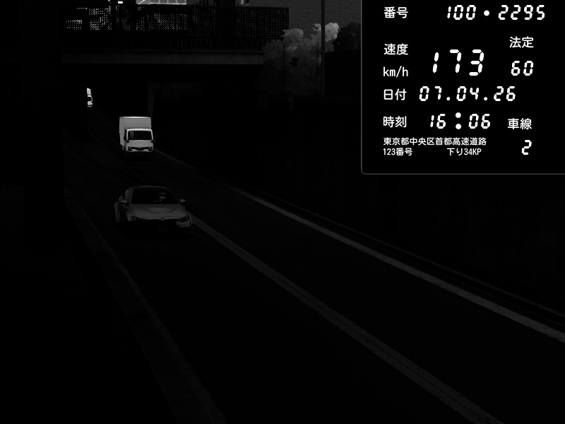 | 2026/04/06 00:36 | C1内回り 京橋 | 133 / 60 km/h | k1125kyle | BMW M4 crash.Sp Varis Widebody | CAPTURE |