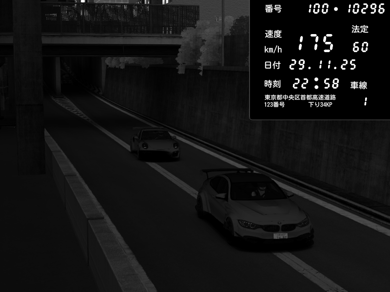 | 2025/11/29 22:58 | C1内回り 京橋 | 175 / 60 km/h | ??? | Porsche 911 GT3 RS | CAPTURE |