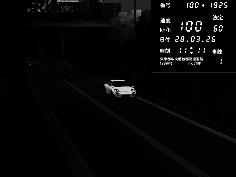 | 2026/03/28 11:11 | C1内回り 京橋 | 100 / 60 km/h | Player | Mazda RX-7 FD3S RE Amemiya | CAPTURE |