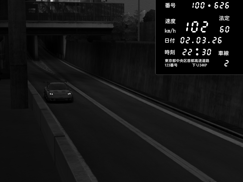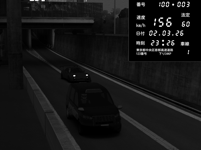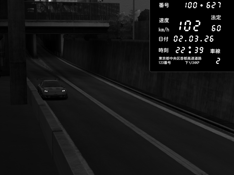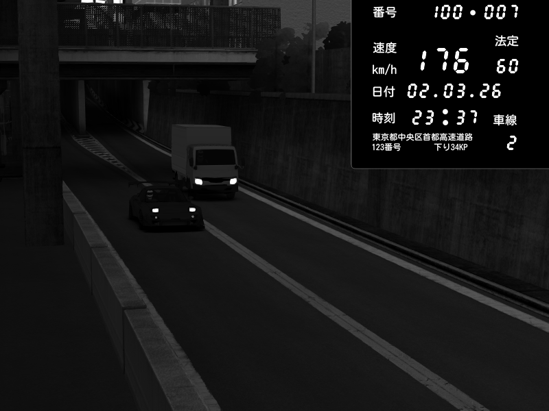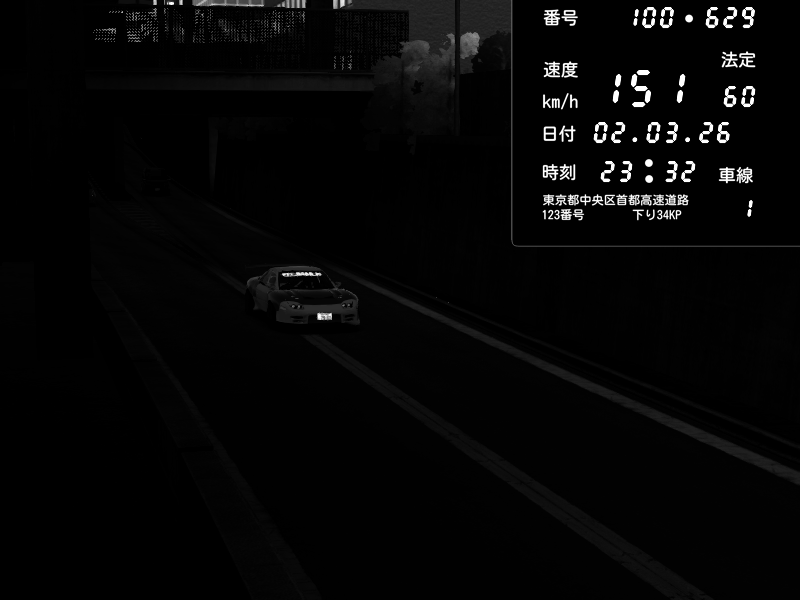 | 2026/03/02 22:30 | C1内回り 京橋 | 102 / 60 km/h | Kageneko_Alice | Mazda RX-7 FD3S RE Amemiya | CAPTURE |