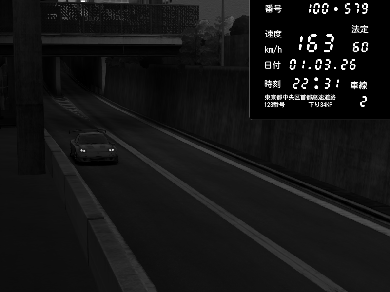 | 2026/03/01 22:25 | C1内回り 京橋 | 118 / 60 km/h | Kageneko_Alice | Mazda RX-7 FD3S RE Amemiya | CAPTURE |