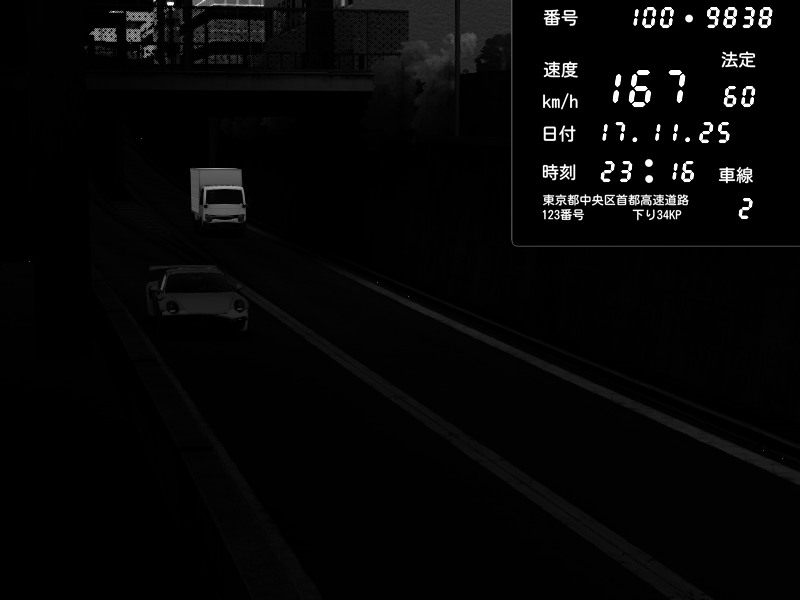 | 2025/11/17 23:16 | C1内回り 京橋 | 167 / 60 km/h | Rura | Porsche 911 GT3 RS | CAPTURE |