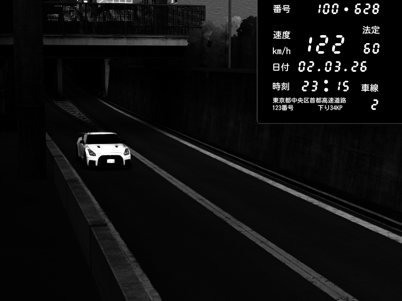 | 2026/03/02 23:15 | C1内回り 京橋 | 122 / 60 km/h | LittleClimb | Nissan GT-R NISMO 2017 | CAPTURE |