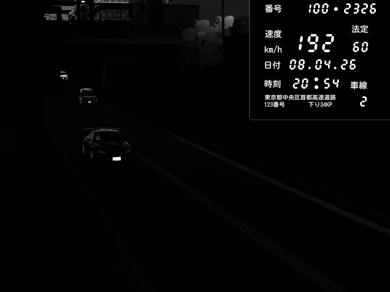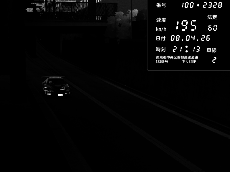 | 2026/04/07 21:13 | C1内回り 京橋 | 169 / 60 km/h | Player | Mazda RX-7 FD3S RE Amemiya | CAPTURE |