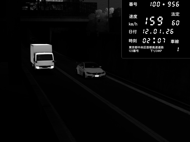 | 2026/01/11 12:13 | C1内回り 京橋 | 193 / 60 km/h | EarlessYapper9 | BMW M4 crash.Sp Varis Widebody | CAPTURE |