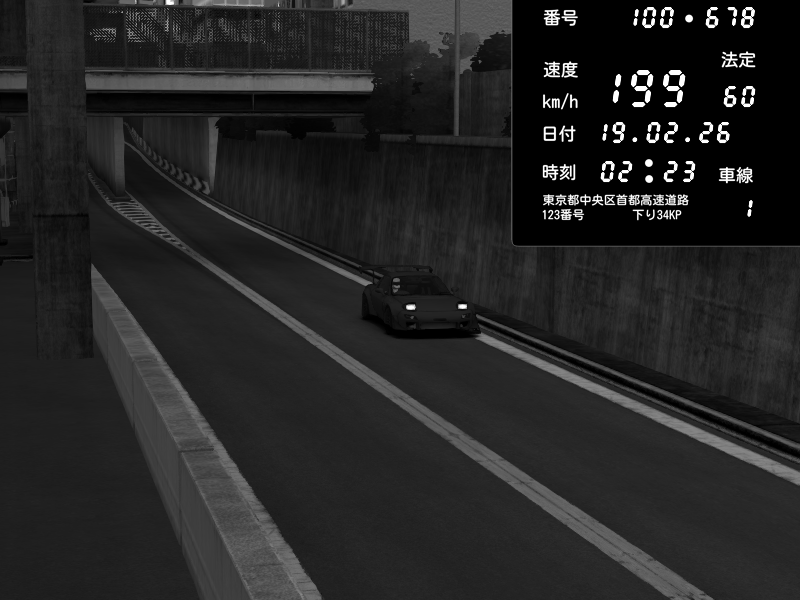 | 2026/02/19 01:26 | C1内回り 京橋 | 172 / 60 km/h | 木曜が一番疲れている | Honda S2000 (AP2 - Legendary) | CAPTURE |
