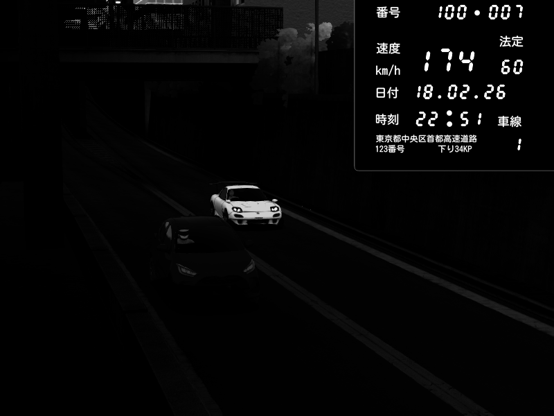 | 2026/02/17 23:27 | C1内回り 京橋 | 153 / 60 km/h | PPED | Mazda RX-7 FD3S RE Amemiya | CAPTURE |