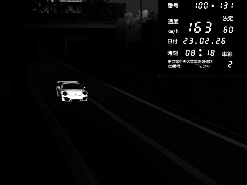 | 2026/02/23 21:51 | C1内回り 京橋 | 174 / 60 km/h | namu000 | Porsche 911 GT3 RS | CAPTURE |