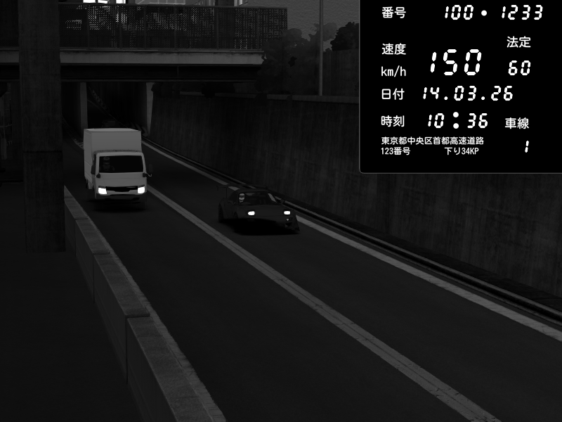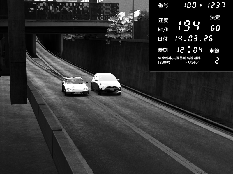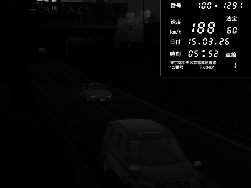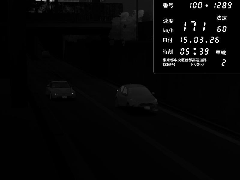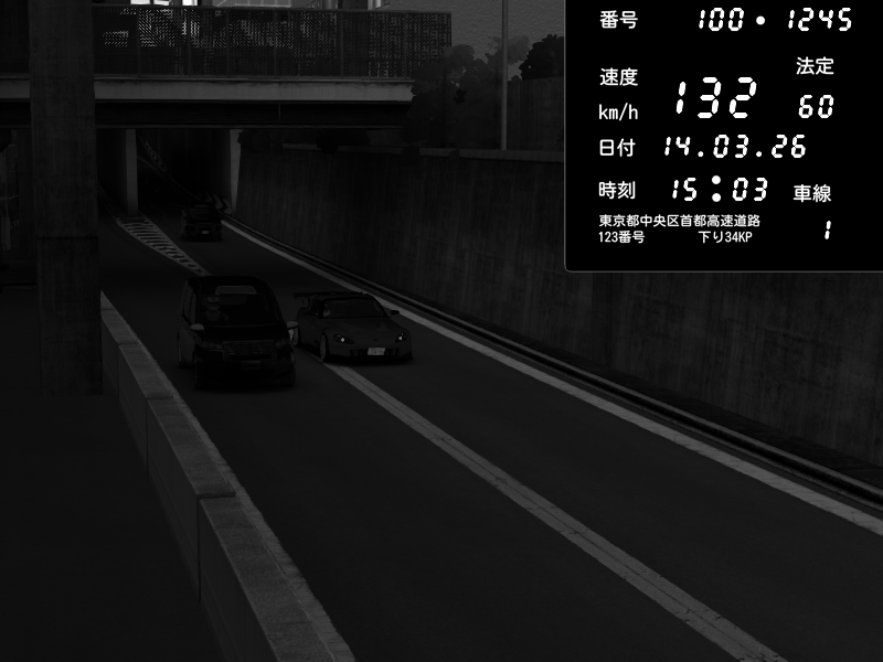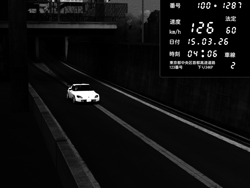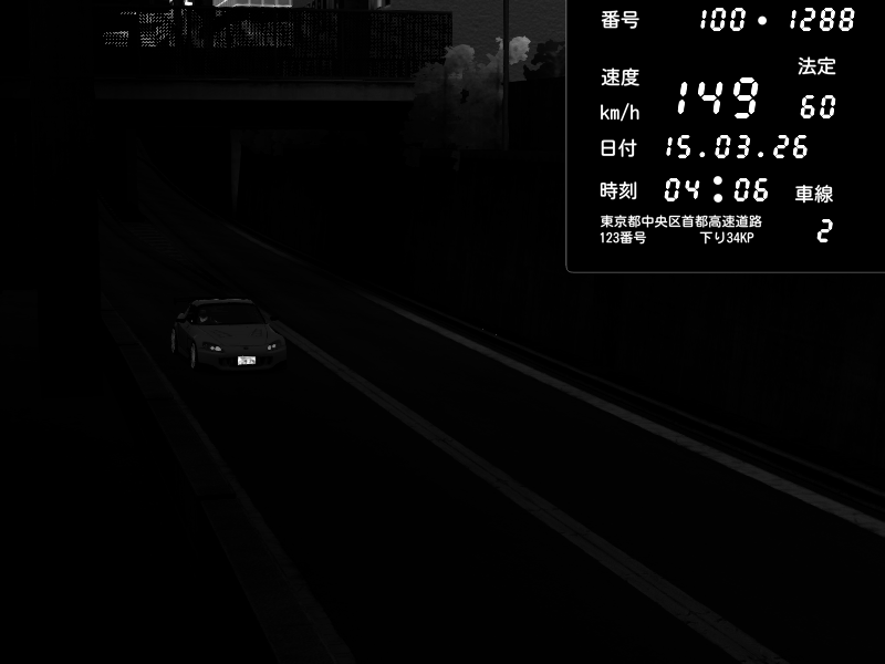 | 2026/03/14 18:40 | C1内回り 京橋 | 150 / 60 km/h | Player | Honda S2000 (AP2 - Legendary) | CAPTURE |