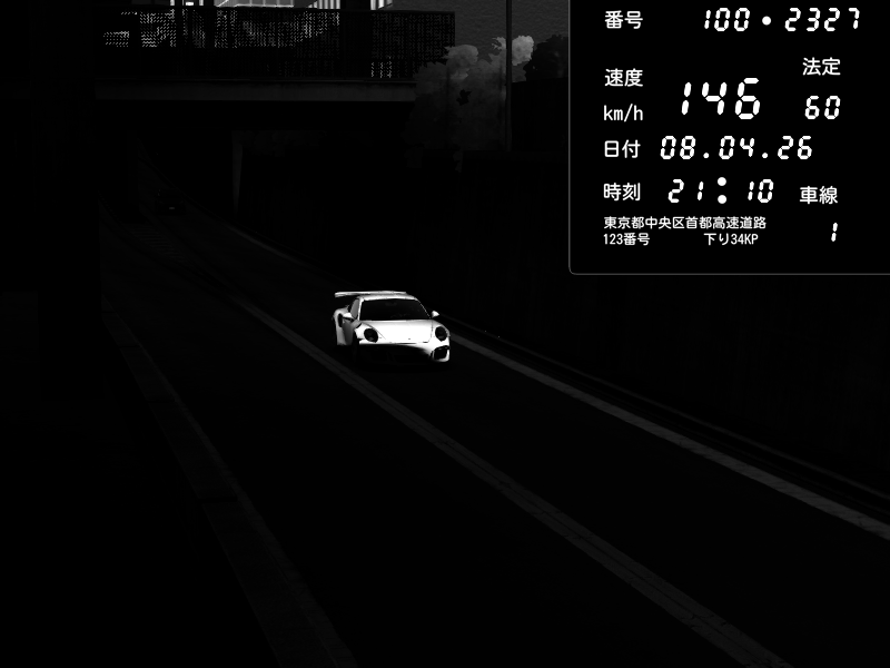 | 2026/04/07 23:05 | C1内回り 京橋 | 147 / 60 km/h | 烏龍♂ | Porsche 911 GT3 RS | CAPTURE |