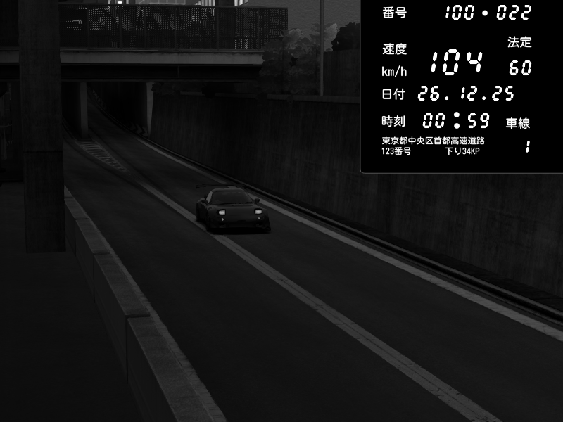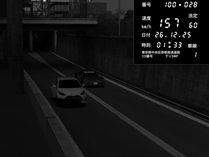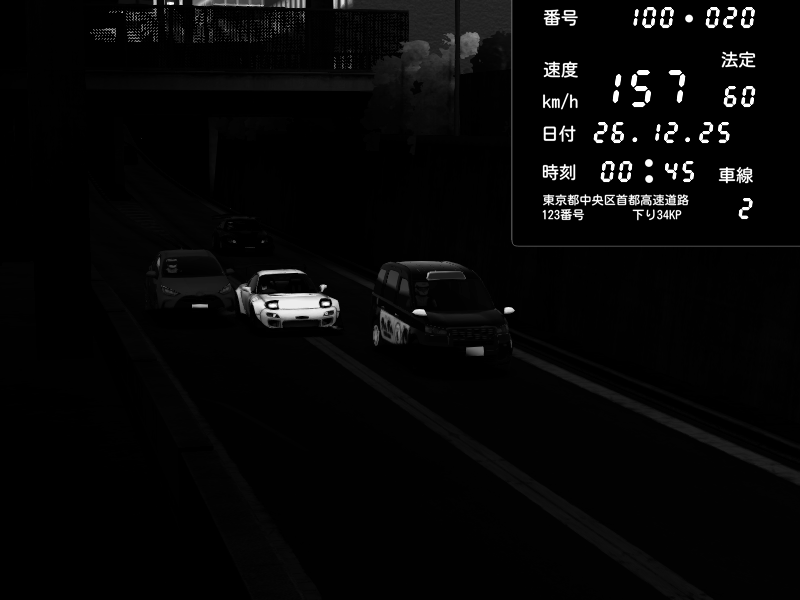 | 2025/12/26 01:33 | C1内回り 京橋 | 157 / 60 km/h | MysteriousExoticsss | Pit Road M - Mitsubishi GTO Twin Turbo | CAPTURE |