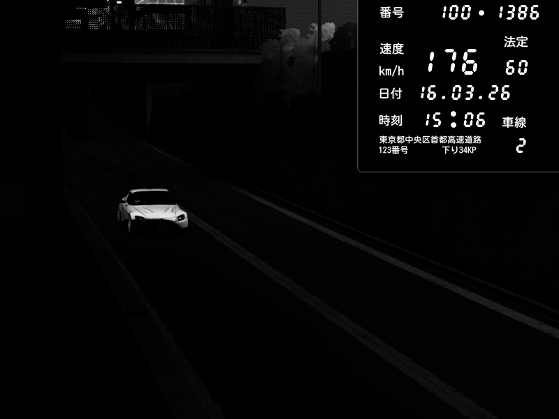 | 2026/03/16 15:06 | C1内回り 京橋 | 176 / 60 km/h | Player | Honda S2000 (AP2 - Legendary) | CAPTURE |