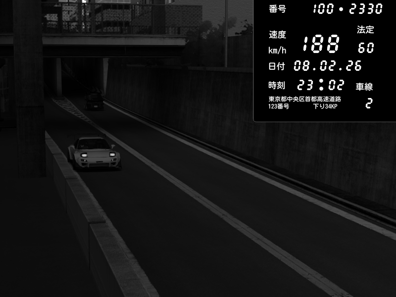 | 2026/02/08 00:29 | C1内回り 京橋 | 176 / 60 km/h | gc8 lover | Mazda RX-7 FD3S RE Amemiya | CAPTURE |
