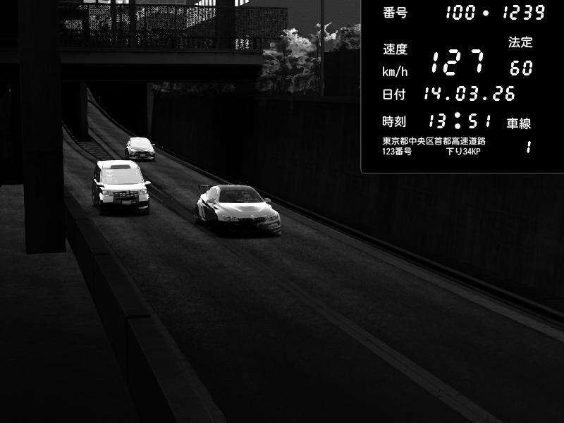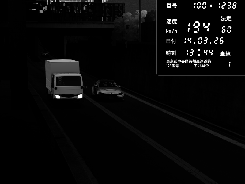 | 2026/03/14 18:54 | C1内回り 京橋 | 177 / 60 km/h | Darksensory | Nissan GT-R NISMO 2017 | CAPTURE |