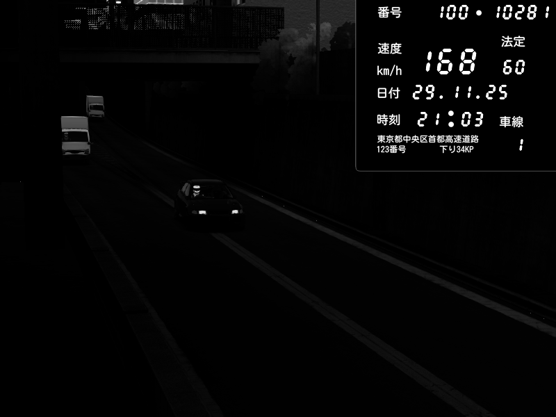| 2025/11/28 19:41 | C1内回り 京橋 | 203 / 60 km/h | 001 | Pit Road M - Mitsubishi GTO Twin Turbo | CAPTURE |