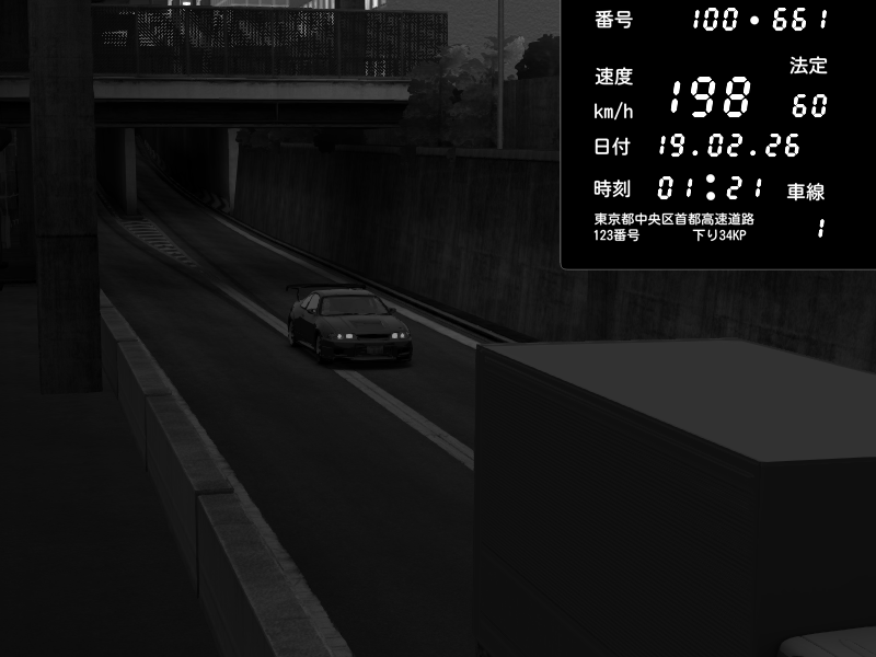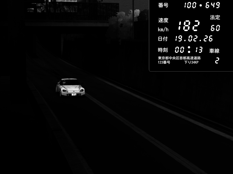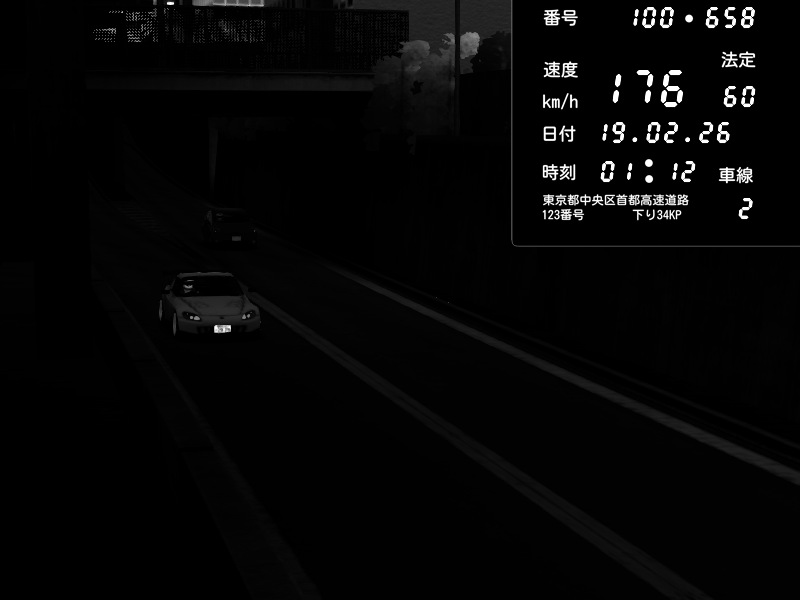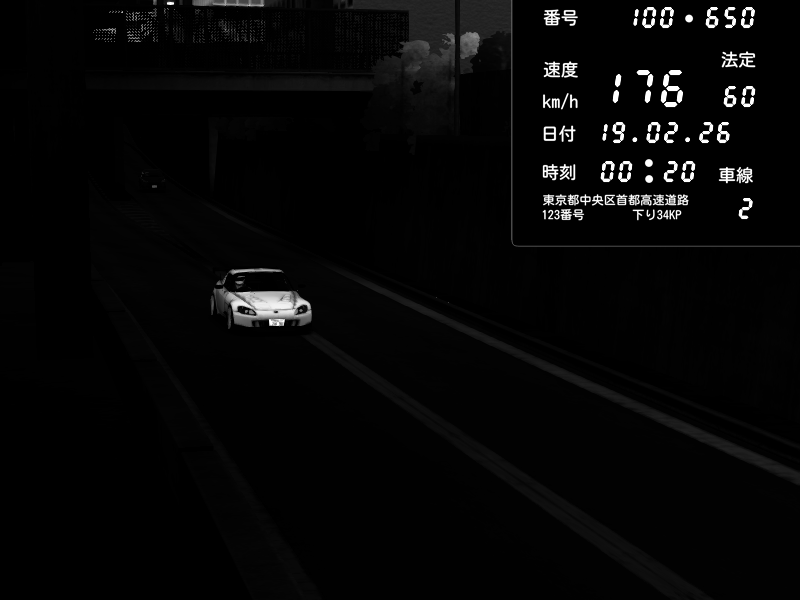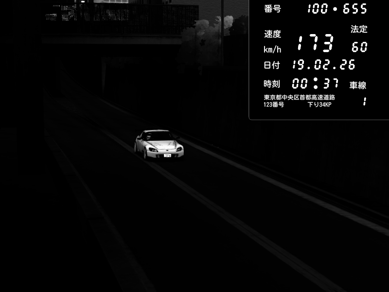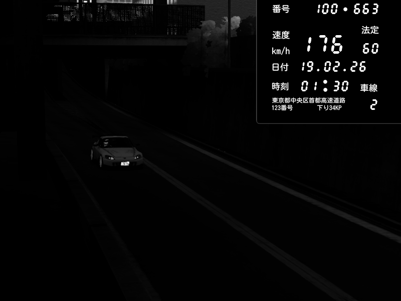 | 2026/02/19 01:12 | C1内回り 京橋 | 176 / 60 km/h | 木曜が一番疲れている | Honda S2000 (AP2 - Legendary) | CAPTURE |
