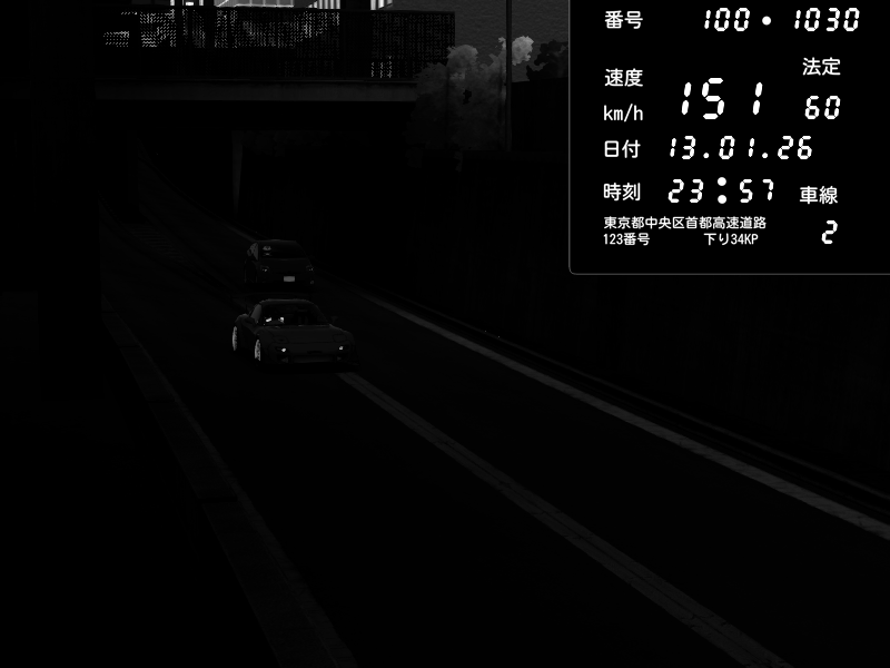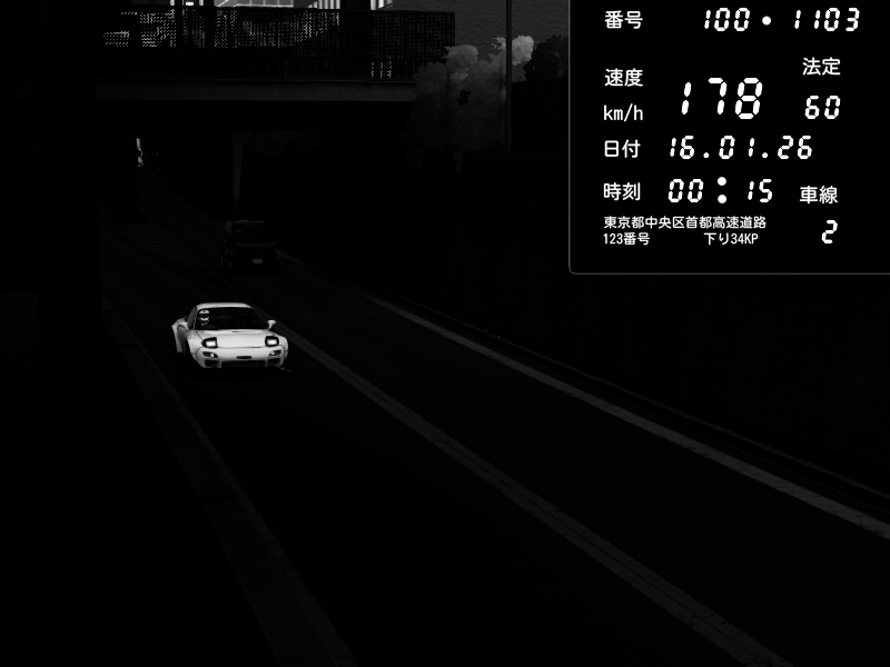 | 2026/01/14 01:54 | C1内回り 京橋 | 173 / 60 km/h | Santos | Mazda RX-7 FD3S RE Amemiya | CAPTURE |