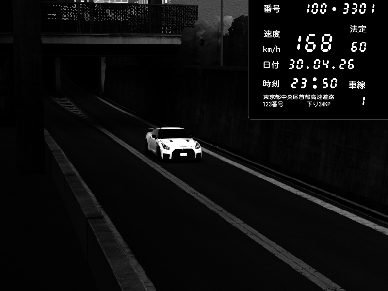 | 2026/04/28 16:59 | C1内回り 京橋 | 128 / 60 km/h | wxmbii | Nissan GT-R NISMO 2017 | CAPTURE |
