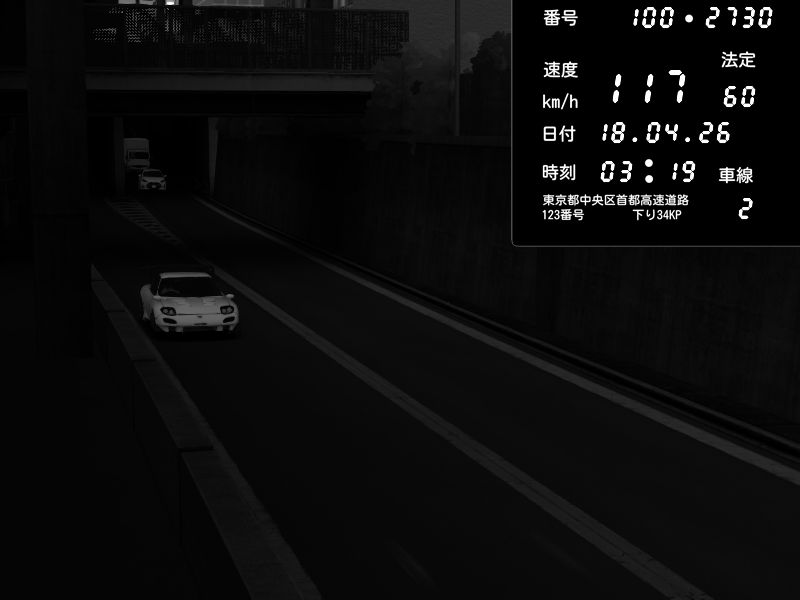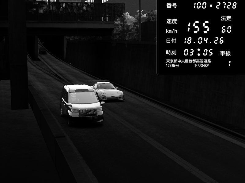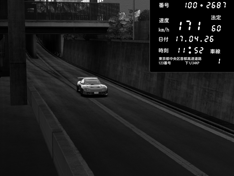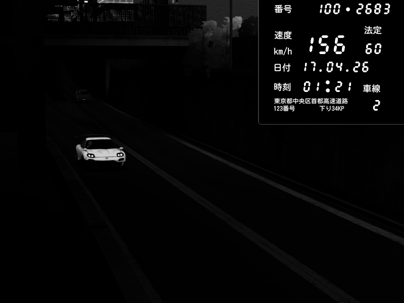 | 2026/04/16 23:04 | C1内回り 京橋 | 162 / 60 km/h | Kawada | Mazda RX-7 FD3S RE Amemiya | CAPTURE |