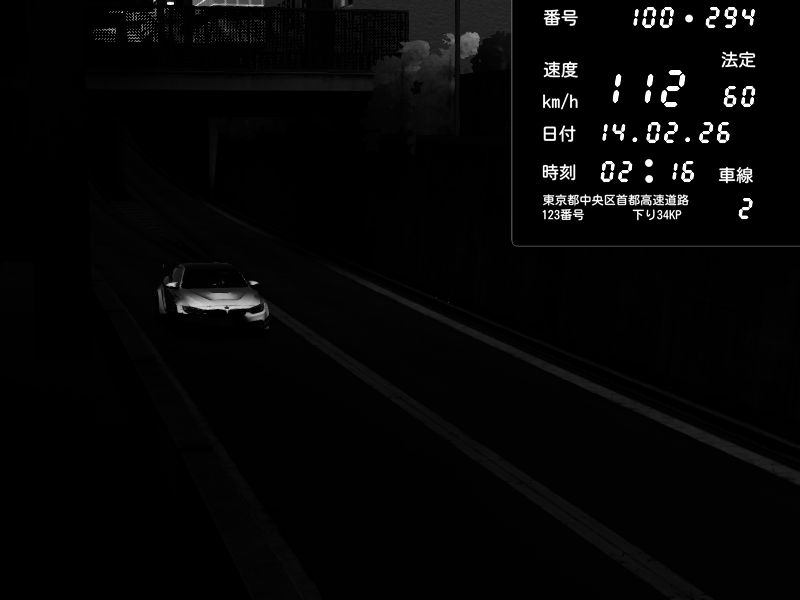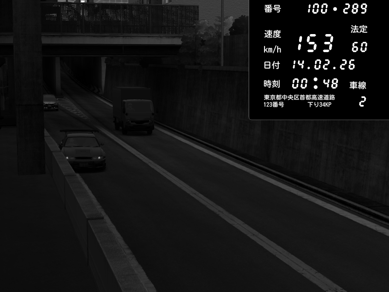 | 2026/02/13 22:22 | C1内回り 京橋 | 189 / 60 km/h | HiRO.T-GT改P500 | Nissan GT-R NISMO 2017 | CAPTURE |
