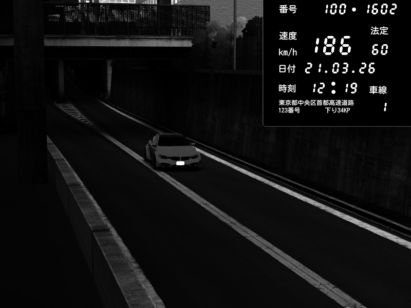 | 2026/03/21 20:33 | C1内回り 京橋 | 192 / 60 km/h | Mixed_P5K | BMW M4 crash.Sp Varis Widebody | CAPTURE |