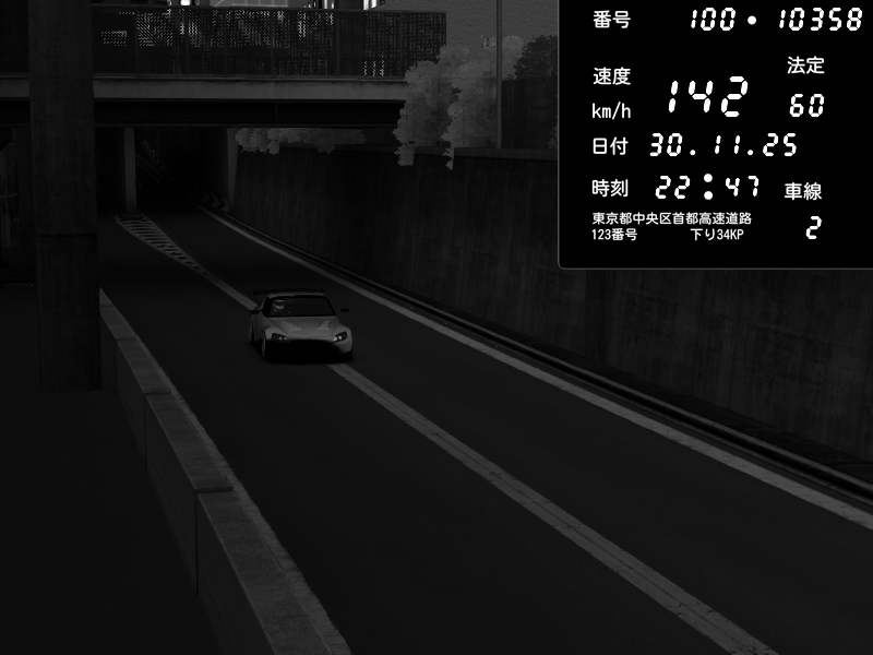 | 2025/11/30 22:56 | C1内回り 京橋 | 134 / 60 km/h | ??? | Honda S2000 (AP2 - Legendary) | CAPTURE |