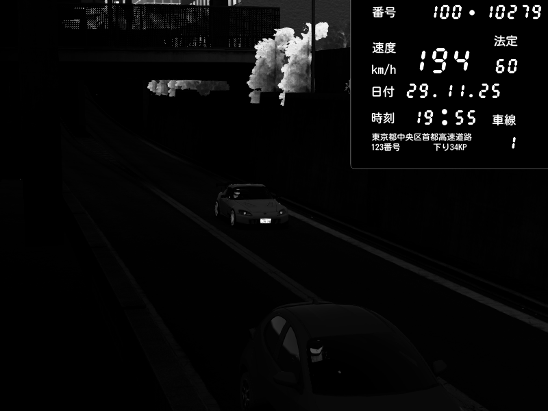 | 2025/11/29 19:55 | C1内回り 京橋 | 194 / 60 km/h | Jeus | Honda S2000 (AP2 - Legendary) | CAPTURE |