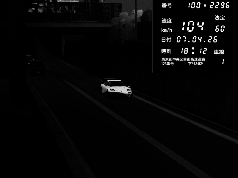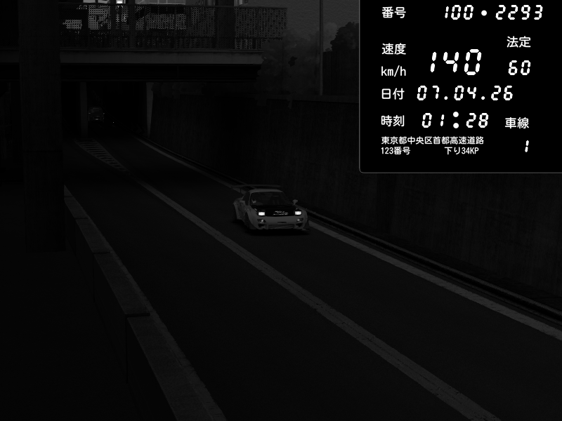 | 2026/04/06 00:31 | C1内回り 京橋 | 180 / 60 km/h | SoftHard | Mazda RX-7 FD3S RE Amemiya | CAPTURE |