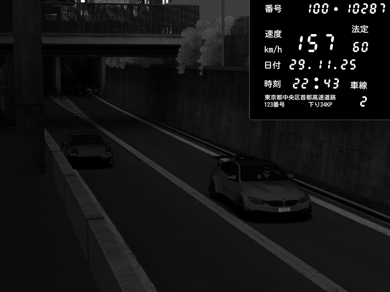 | 2025/11/29 22:43 | C1内回り 京橋 | 147 / 60 km/h | 🔰Shiero | BMW M4 crash.Sp Varis Widebody | CAPTURE |