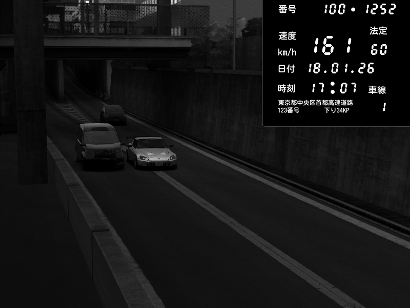 | 2026/01/17 17:49 | C1内回り 京橋 | 133 / 60 km/h | Surya | Honda S2000 (AP2 - Legendary) | CAPTURE |
