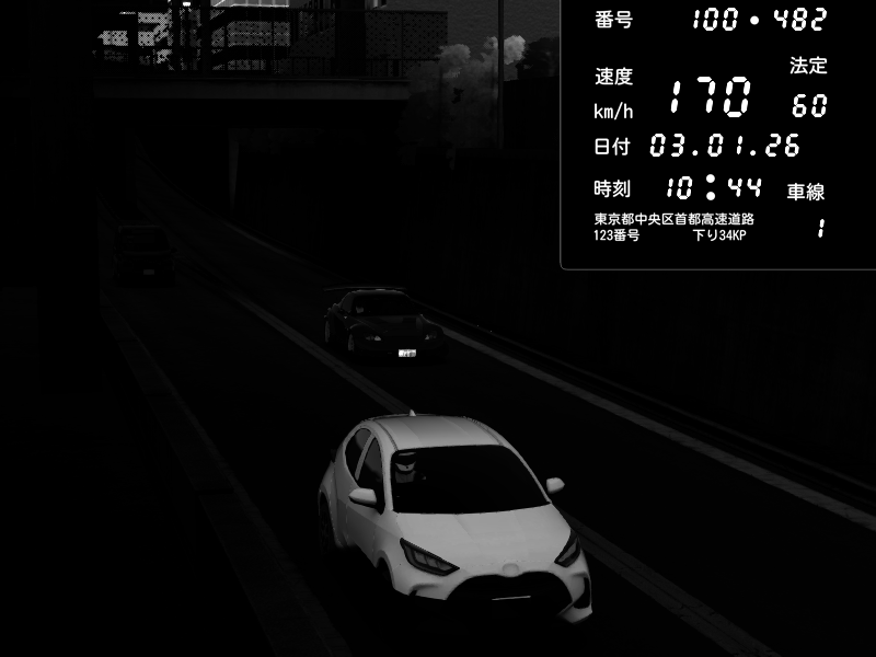 | 2026/01/03 22:09 | C1内回り 京橋 | 170 / 60 km/h | pussy push | Nissan GT-R NISMO 2017 | CAPTURE |