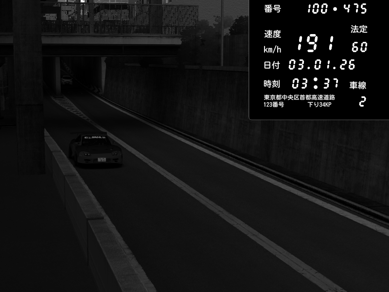 | 2026/01/03 16:52 | C1内回り 京橋 | 133 / 60 km/h | D-LIKEkai | Mazda RX-7 FD3S RE Amemiya | CAPTURE |