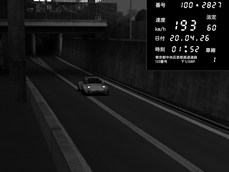 | 2026/04/18 23:29 | C1内回り 京橋 | 184 / 60 km/h | Han Singular | Mazda RX-7 FD3S RE Amemiya | CAPTURE |