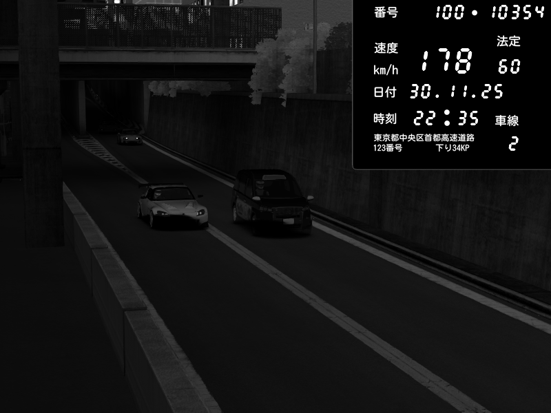 | 2025/11/30 22:35 | C1内回り 京橋 | 178 / 60 km/h | ??? | Honda S2000 (AP2 - Legendary) | CAPTURE |