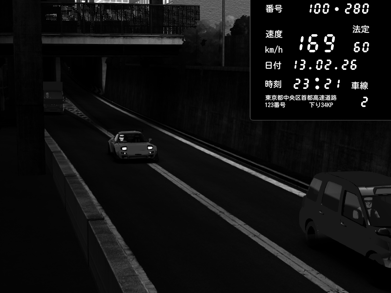 | 2026/02/13 23:15 | C1内回り 京橋 | 177 / 60 km/h | Player | Honda S2000 (AP2 - Legendary) | CAPTURE |