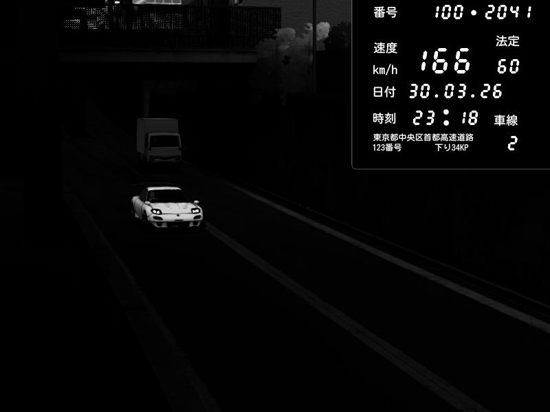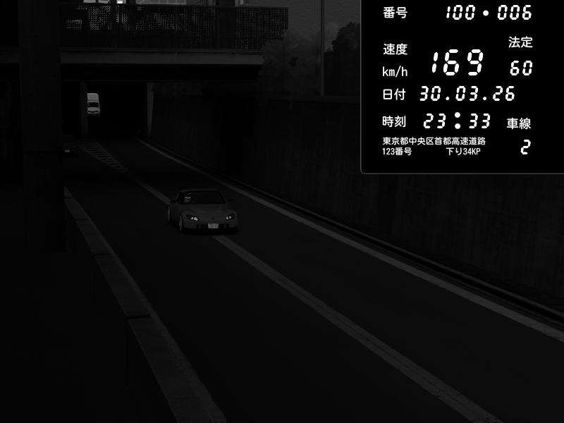| 2026/03/30 22:59 | C1内回り 京橋 | 183 / 60 km/h | U-0/S.R.C | Honda S2000 (AP2 - Legendary) | CAPTURE |