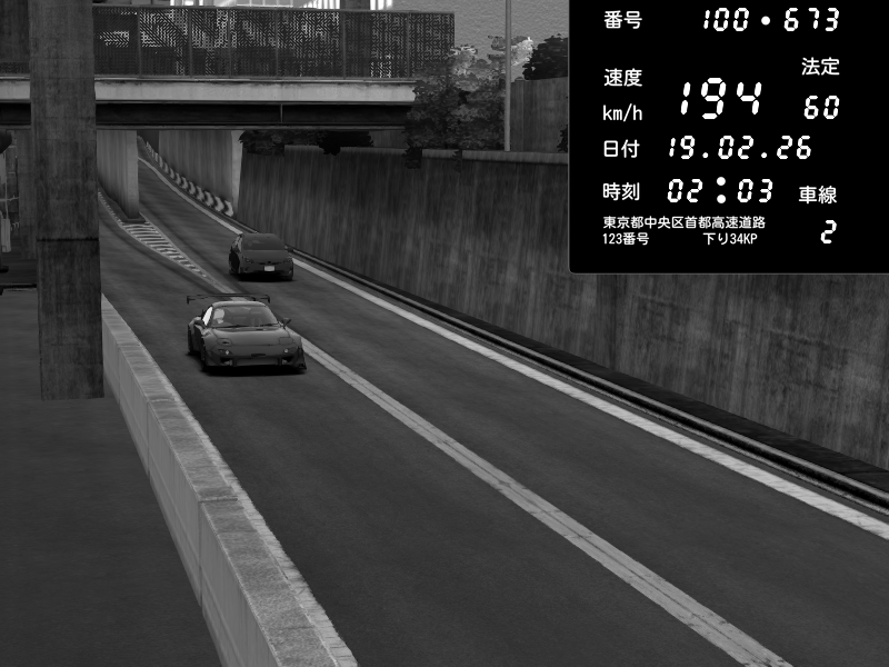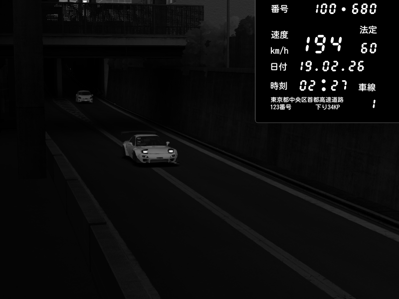 | 2026/02/19 01:59 | C1内回り 京橋 | 110 / 60 km/h | yukito(pad) | Mazda RX-7 FD3S FEED Afflux GT3 | CAPTURE |