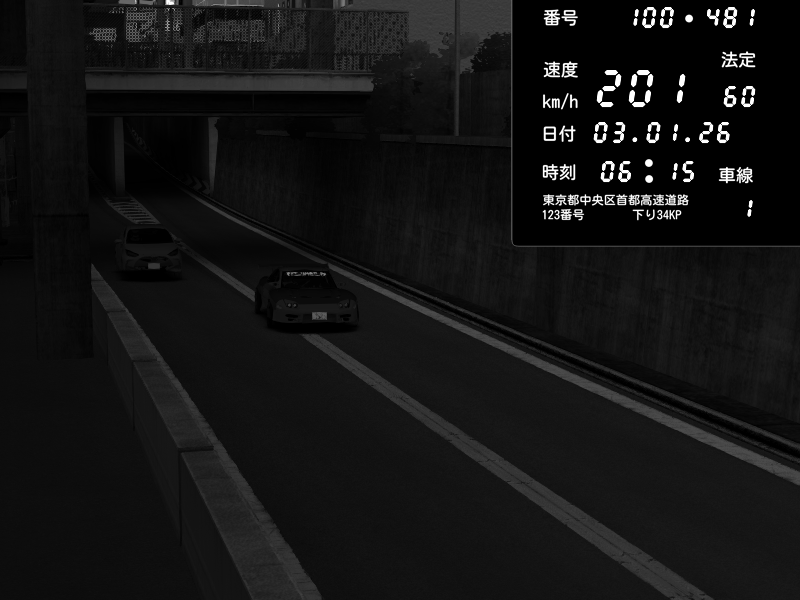 | 2026/01/03 06:15 | C1内回り 京橋 | 201 / 60 km/h | Raven | Pit Road M - Mitsubishi GTO Twin Turbo | CAPTURE |