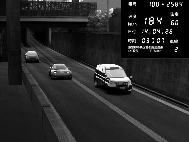 | 2026/04/14 03:27 | C1内回り 京橋 | 185 / 60 km/h | SarkoNAJA | Nissan GT-R NISMO 2017 | CAPTURE |