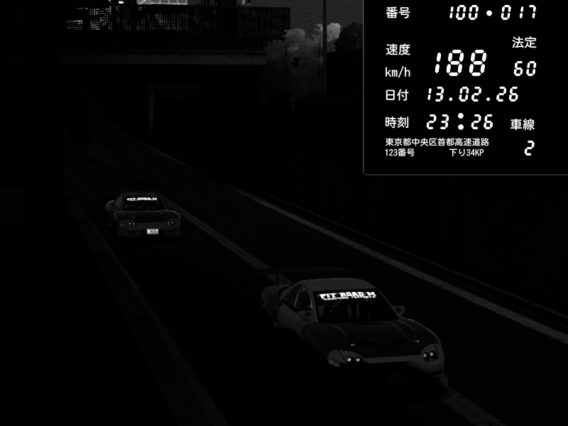| 2026/02/13 21:45 | C1内回り 京橋 | 135 / 60 km/h | みみみみ | Honda S2000 (AP2 - Legendary) | CAPTURE |